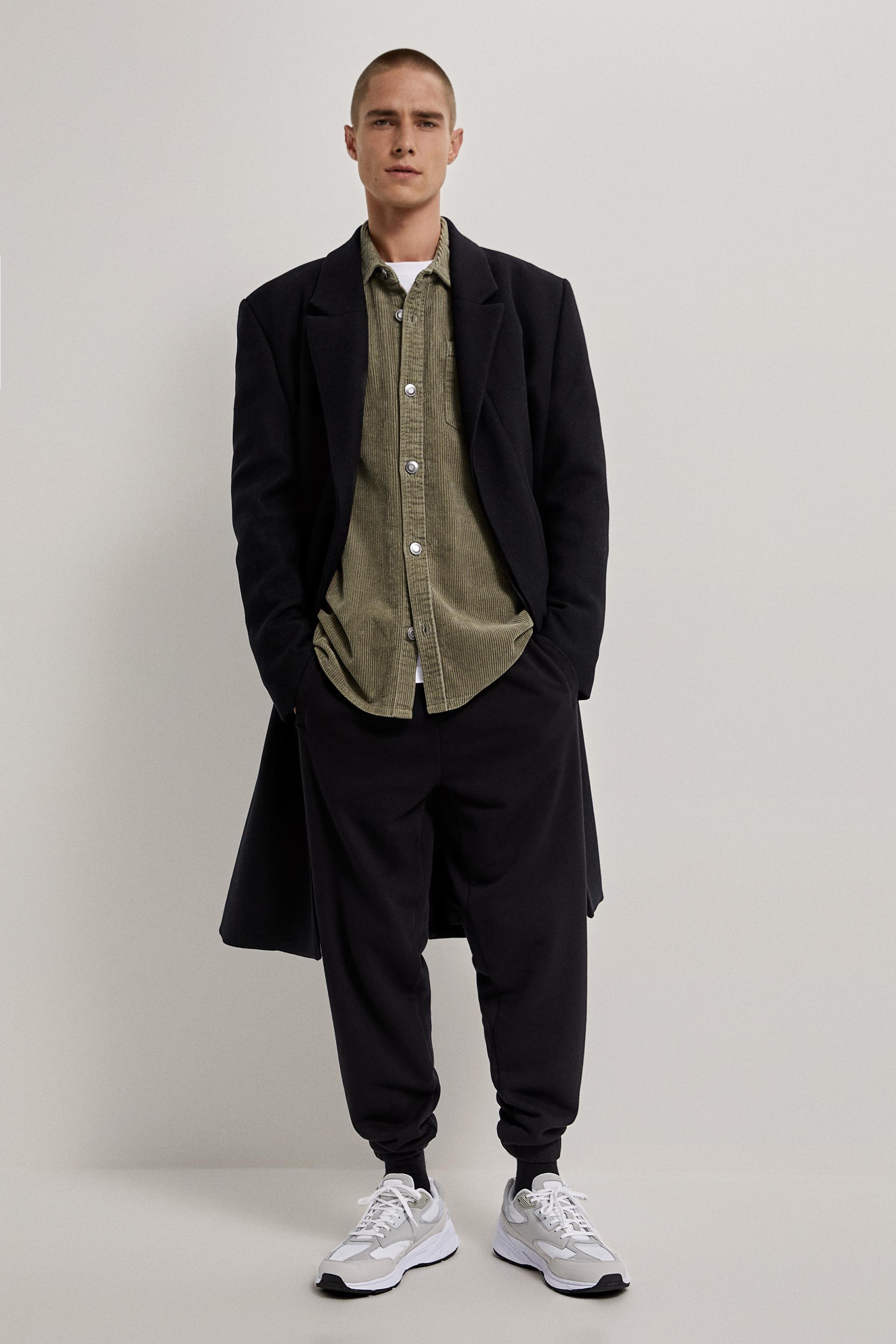 Image 1 Of Long Check Coat Houndstooth Jacquard Sweater Corduroy Trousers Animal Print Jacquard Socks From Zara メンズファッション コーデュロイパンツ ファッション
