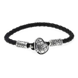 Bottega Veneta ボッテガ ヴェネタ イントレチャート ブレスレット レザー ブラック シルバー金具 黒男女兼用 レディース メンズ 美品 中古 ー ブラモ 欲しいブランド品がすぐ見つかる ネット通販サイト