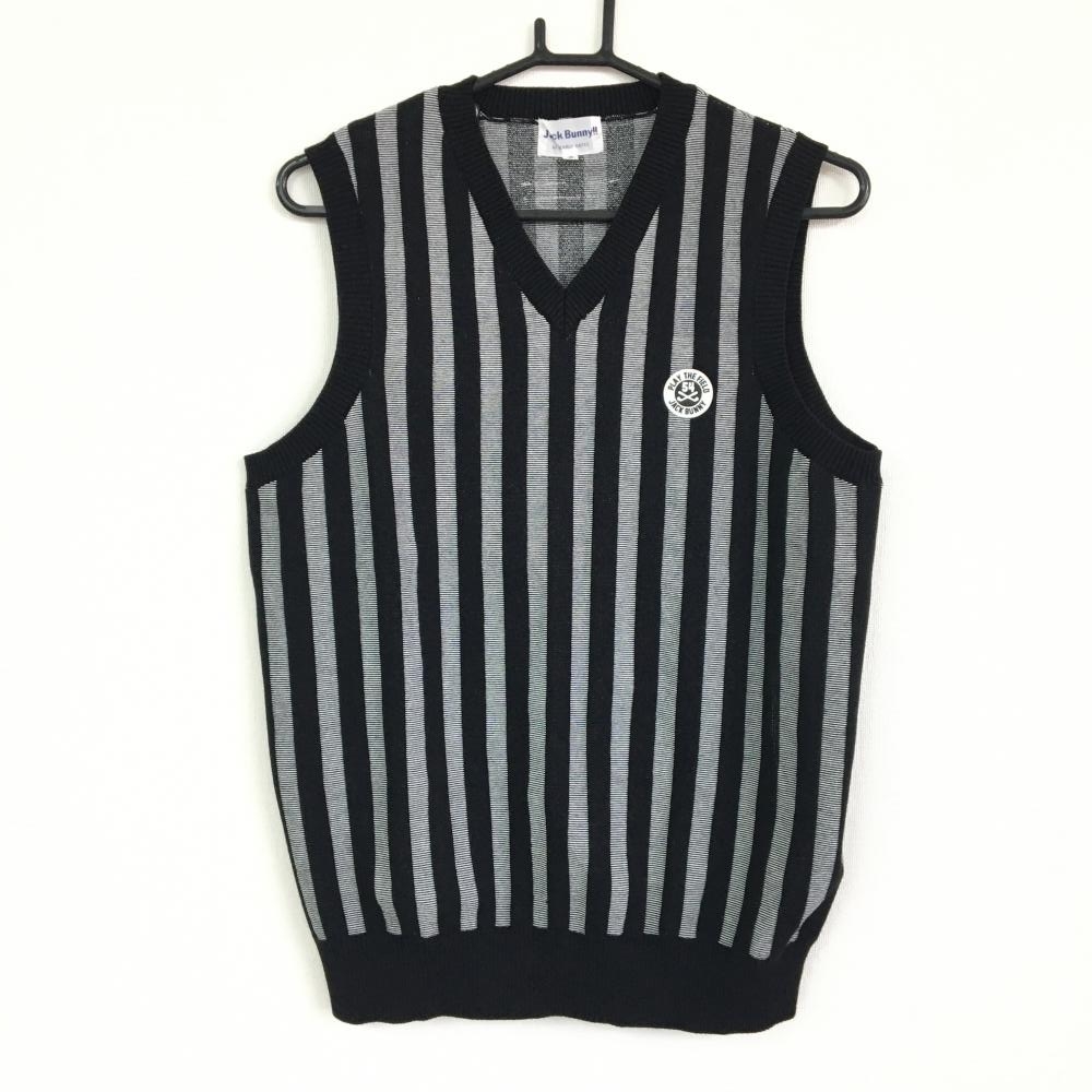 ジャックバニー ニットベスト 黒 白 ストライプ 18年モデル コットン混 ゴルフウェア買取 レオナード