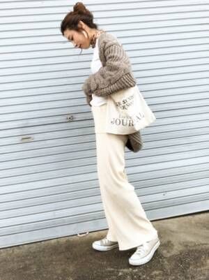 温かくて今っぽい すっきり見える大人のニットパンツコーデ キナリノ
