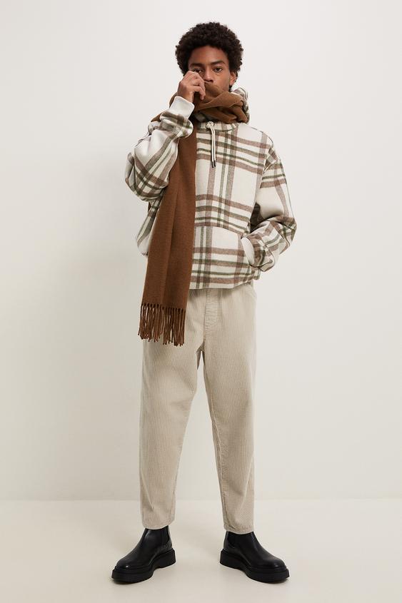 Image 1 Of Long Check Coat Houndstooth Jacquard Sweater Corduroy Trousers Animal Print Jacquard Socks From Zara メンズファッション コーデュロイパンツ ファッション